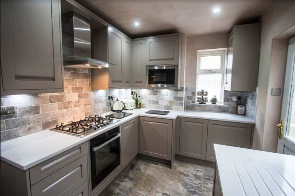 The width of the kitchen cabinets is usually a multiple of 10 or 15 cm, and the height of the base units will reach 91 cm including the adjustable leg, plus the addition of the worktop which can be either 2cm, 3cm, 4cm thick.